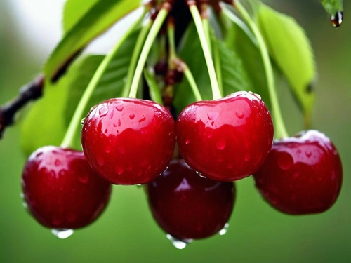 - черешня Оленька — популярная черешня для переработки. Ягоды средние по размеру, мякоть плотная, вкус гармоничный — сладость и кислинка сбалансированы, что делает сорт универсальным для варенья, соков и сушки.
