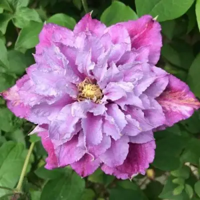 Отдельные побеги вырастают в длину не более 1,6-2 метров.Цветки средней величины, могут достигать в диаметре 10-12 см. Сами цветки, а, точнее, чашелистики имеют очень красивый розово-лиловый окрас. От основания лепестков по их центру выделяется темно-розовая полоска. А пыльники при этом имеют ярко-желтый цвет. Такое сочетание делает цветки клематиса Пиилу очень привлекательными для любого любителя этих чудных растений. Каждый простой цветок содержит 4-6 лепестков с волнистым краем, у махровых же цветков лепестков может быть в 3-4 раза больше.