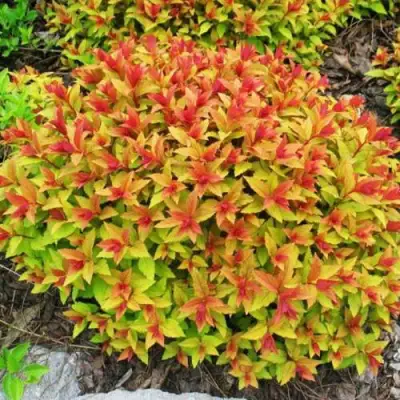 Спирея японская сорта Голдфлейм (Голд Флейм) — это прекрасный низкорослый кустарник, который станет настоящей находкой для любителей садоводства. Его необычный внешний вид и меняющаяся окраска листвы делают это растение настоящим декоративным хамелеоном. С возрастом куст достигает высоты от 0,6 до 0,8 метров и ширины от 0,7 до 1 метра, отлично подходя для создания ярких композиций. Благодаря компактной и густой кроне, спирея прекрасно смотрится как в отдельных посадках, так и в групповых.Листья спиреи Голдфлейм продолговатые и заостренные, с зубчатым краем. Весь сезон наблюдается интересная игра цветов: начавшись с оранжево-красного и бронзово-золотистого, летом листва становится ярко-желтым, а затем желто-зеленым во время цветения. И после цветения оно снова возрождает огненные краски, придавая саду новую динамику.