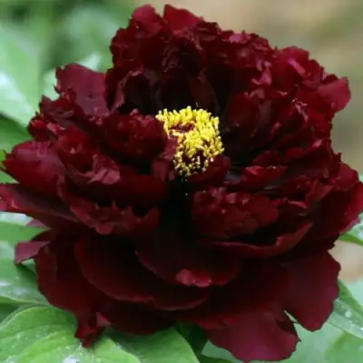 Главной изюминкой саженцев пиона древовидного "Черный тигр" являются их прекрасные цветы. Темно-пурпурные лепестки с желтой серединкой создают эффектный контрастный образ, который непременно привлечет взгляды. Размер цветков мелкий, диаметр составляет от 10 до 15 см. Они махровые и обладают насыщенностью темного цвета, что делает их поистине привлекательными.
