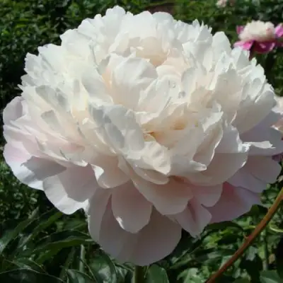 Цветки пиона Вог — это отдельная история. Их махровая структура и крупные размеры (диаметр до 18 см) делают их поистине восхитительными. Начинают они цвести нежно-розовыми с легким серебристо-белым блеском, а к окончанию цветения превращаются в чисто белые, что придает удивительный эффект двухцветности. Яркость и восхитительный аромат цветков делают их незабываемыми.