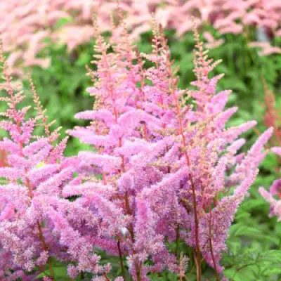 Зеленые прямостоячие побеги делают астильбу "Америка" великолепным акцентом в любом садовом ландшафте. Особый взгляд притягивают крупные ромбовидные соцветия, изящно возвышающиеся над зелеными листьями, создавая эффектный контраст и подчеркивая красоту окружающих растений. Цветение происходит с июня по август и продолжительность его составляет около 18 дней, что делает "Америку" настоящей звездой летнего сада.