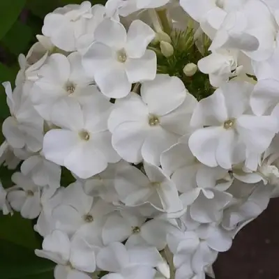 Особенностью флокса являются его ланцетные листья, окрашенные в насыщенный зеленый цвет. Листья имеют гладкую, матовую и очень мягкую поверхность, что добавляет эстетическую привлекательность растению. Цветы, диаметром 3,3 см, имеют блюдцевидную форму и белоснежную окраску с легким волнистым эффектом лепестков. Их аромат чарующий и достаточно интенсивный, что наполняет окружающее пространство нежными летними нотами.