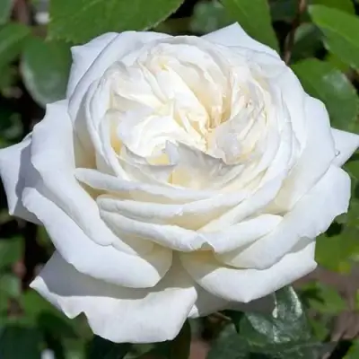 Одной из основных особенностей этого сорта является окраска цветка. Бутон розы имеет белую окраску, а сам цветок чисто-белый. Основная окраска цветка тоже белая. Форма бутона - бокаловидная, а форма цветка - чашевидная с высоким центром. Размер цветка крупный, его диаметр составляет 14 сантиметров. Цветок густо махровый, с количеством лепестков от 80 до 95.