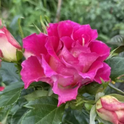 Главная особенность сорта — насыщенное цветение с июня до осени. Цветки чашевидные, диаметром 6–8 см, махровые. Окраска — глубокий пурпурно-малиновый, с кремовой изнанкой лепестков. При раскрытии бутон сохраняет форму, не осыпается. Цветы собраны в кисти по 3–7 штук, что создаёт плотный цветовой объём на кусте.