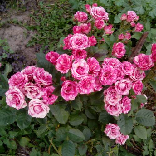Бутоны роз "Флеш Данс" окрашены в нежный розовый цвет, который при раскрытии превращается в насыщенный малиново-розовый цветок с очаровательными белыми полосами. Эти двухцветные и полосатые цветы придают кусту особый шарм и необыкновенное изящество. Размер цветков небольшой, их диаметр составляет от 3 до 5 см. Цветки махровые, с 25 лепестками, что придает им пышность и объем. Цветы собраны в соцветия, на каждом стебле может быть от 5 до 10 цветков. Аромат цветов слабый, что делает их идеальными для тех, кто предпочитает ненавязчивые запахи.